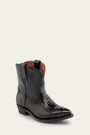 A true modern, western-styled short boot, the Billy Short is available in a variety of quality crafted leathers and suedes. It features a Goodyear-welted construction for durability and pull-on tabs make for easy on-off. This boot makes a statement with a variety of looks from denim to dresses.