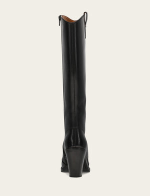 Designed for effortless wear, this knee-high riding boot features a flexible rubber outsole for immediate comfort. Crafted from durable premium materials, it showcases a round toe and chunky heel for modern versatility. Pair with casual denim or dresses for everyday appeal.