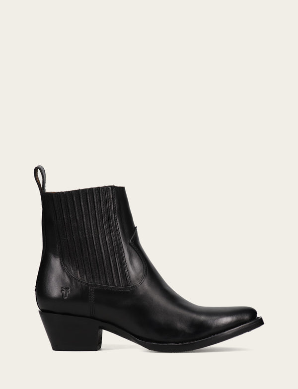 This ankle bootie is a modern combination of Western and Chelsea styles. Made from soft leathers, suedes, and metallic accents, the Sacha Chelsea has a sleek western toe, elastic gore inserts at the sides, and a pitched heel for day to night comfort. Available in a range of elevated neutral hues, this style seamlessly pairs with everything from vintage dresses to skinny jeans.