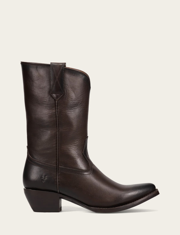 Crafted with supple leather that boasts a lustrous sheen and authentic texture, the Sacha Mid Pull On adds a modern edge to an iconic western silhouette. The mid-calf height provides a perfect fit that flatters any leg shape, while the sleek pointed toe and pitched heel will put you on a path to elevated elegance. Featuring traditional pull tabs for easy on-and-off access, the 180-degree Goodyear welted sole ensures durability and flexibility, making every step feel effortless.